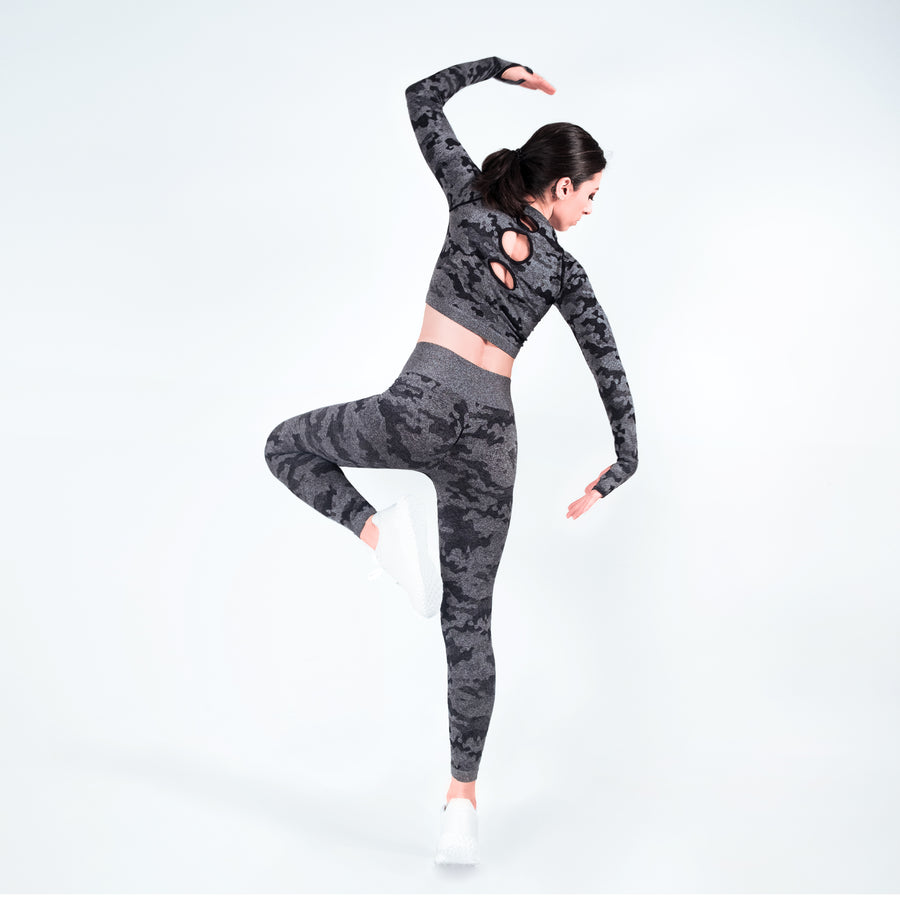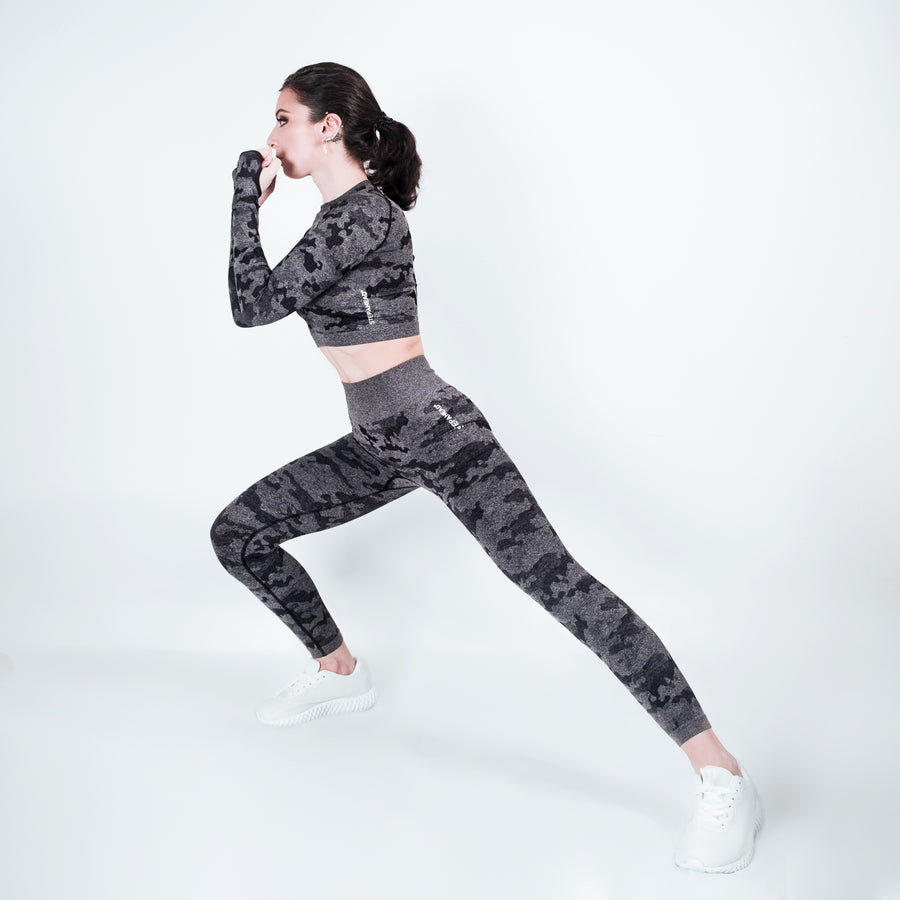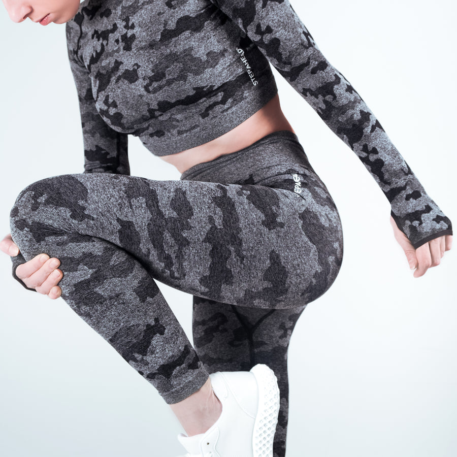 Whatever your mission, the STEPAHEAD Camo Seamless Two Pieces Fitness set will see you through in style all year round.