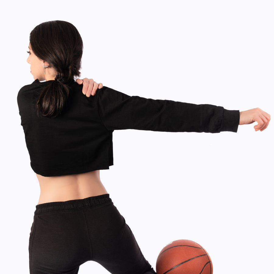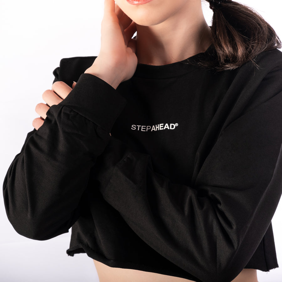 Step Ahead Pullover Crop Black Sweatshirt