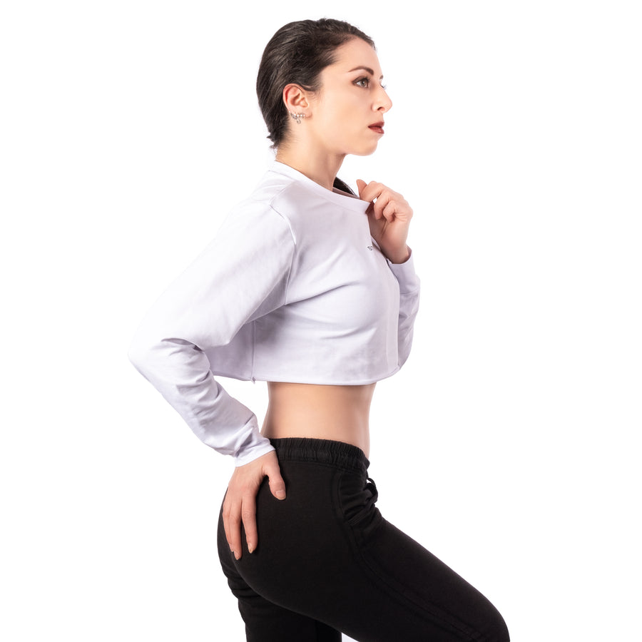 Staying in? Our All Season crop Sweatshirt is here to keep you comfy, cool and cosy. Whether it’s your new workout wear or you’re looking for clothes to simply chill out in, the STEPAHEAD crop Sweatshirt is the perfect (and only) top to slip into right now.