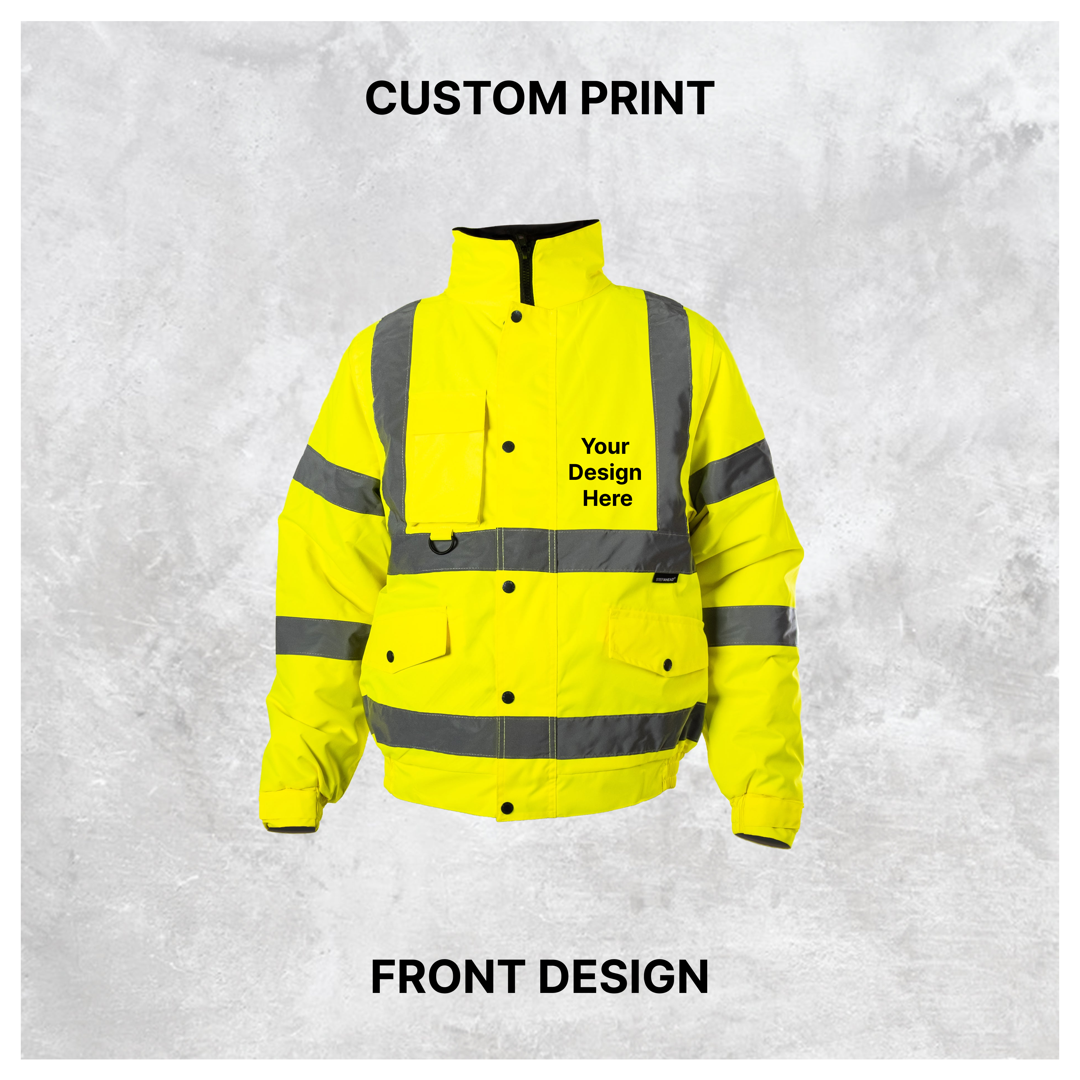 Designed for demanding outdoor and industrial environments, the Step Ahead Workwear Custom Print Hi-Vis Bomber Jacket is a heavy-duty yet highly comfortable garment that keeps you warm, dry, and visible throughout long working hours. Ideal for construction, logistics, utilities, and general outdoor use, this jacket combines durability, safety, and professional branding.