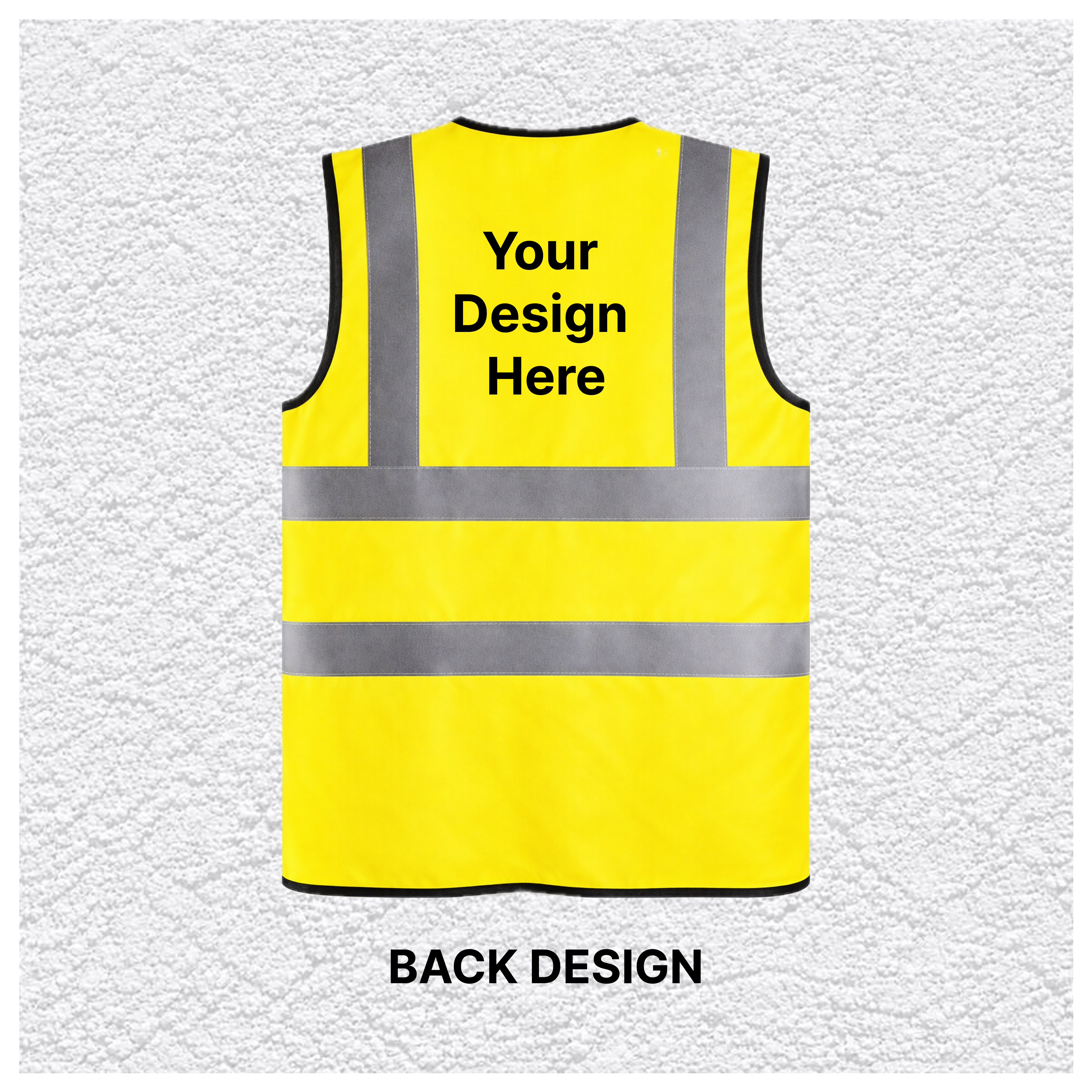 This is a custom print vest, allowing you to add logos, company names, or text to create branded workwear for teams, contractors, and businesses. Available in yellow and orange, it’s a practical and cost-effective PPE solution.