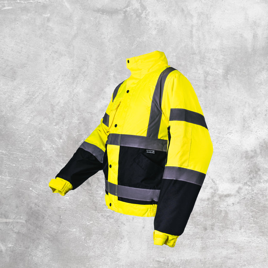 Step Ahead Hi Visibility Yellow/Navy Two Tone Bomber Jacket